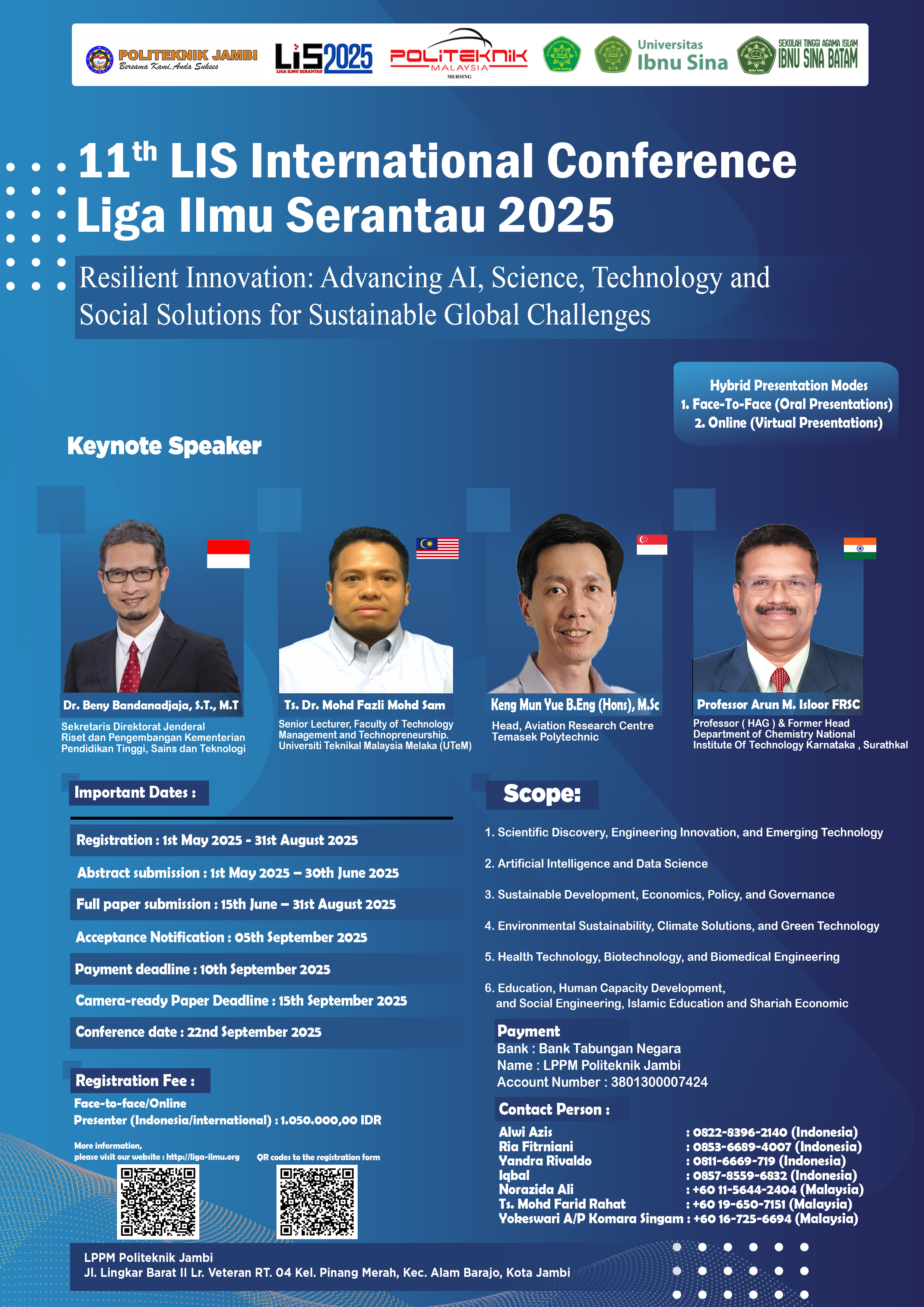 Liga Ilmu Serantau (LIS) is an international conference hosted by Yayasan Pendidikan Ibnu Sina Batam Indonesia as a main organizer collaboration with Politeknik Mersing Johor Malaysia and Politeknik Jambi Indonesia and focusing on state of the art technologies pertaining to Technology and Science, Health, Education and Economic and Business, and its application in industries
